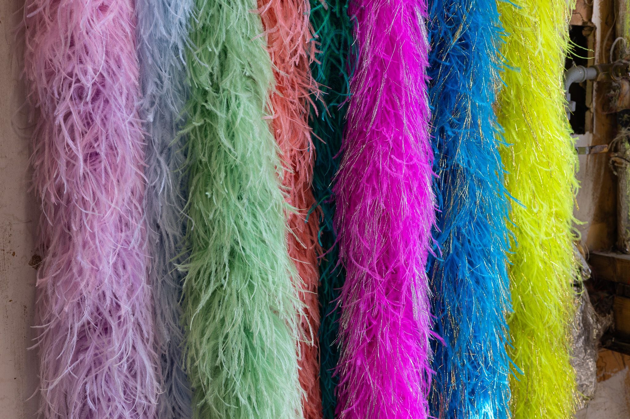 The feathers are individually hand sorted before being dyed in our dye works, further preparation and manufacturing all happens on site to produce many high quality feather trims, boas and accessories.
